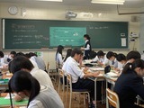 波濤祭とテストの間、本校では授業研究週間を実施しています。これは、「思考力・判断力・表現力の育成」「個別最適な学びのためのICT活用」「協働的な学びを促す」ことなどを目的として各教科の先生方が授業公開し、相互参観・事後振り返りを行う取り組みです。生徒諸君が自学に向かうようにシミュレーション・実験を行う授業や、生徒が解説・説明して進む授業など先生方の工夫が満載、生徒諸君が活発に活動する時間で、参観が楽しみな期間です。