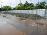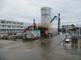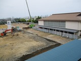フェンスの外からでは変化はあまり分かりませんが、新校舎の基礎工事が進んでいます。この後は建設予定地を大きく掘り起こし、地震や津波にびくともしない5階建て校舎の基礎が5カ月くらいかけて作られる予定です。