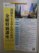 職員室前に掲示してありますが、東京大学の「高校生と大学生のための金曜特別講座 冬学期」が10月10日よりスタートしています。今週は、明日の模擬試験に配慮したためか、はたまた、テニス・バスケ・ソフト・弓道などなどの新人戦大会に配慮したのか休講ですが、来週11月7日は「脳の情報処理の仕組みを探る~システム神経科学入門~北西卓磨 東京大学教養学部総合自然学科准教授」です。文理問わず毎週様々な講座が配信されています。大学での研究に触れる機会でもあります。是非視聴に挑戦してください。