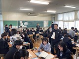 中間テスト以降、日々授業を参観しています。各先生方の授業を見るため、時間割の関係で時には同じクラスを続けてみたりします。生徒諸君御承知おきください。そんな中で今日は特に研究授業として、私以外にも多くの先生方が参観する授業がありました。1年生の英語ですが、グループでの学び合いや、個人での意見作成、集団内でのブラッシュアップ、そしてそれらを英語で表現するなどかなり重たい内容の授業でしたが生徒諸君、指導された先生ともに上手にこなしていました。日々研鑽を行い、このような主体的で対話的な深い学びが行われている南高は素晴らしいと感じた1時間でした。