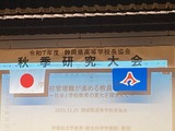 今日は県校長協会秋季研究大会のため、1日静岡市「あざれあ」に来ています。教育長からの講話や県教委からの連絡、早稲田大学教授による素軸づくりの講演の他、みおつくし特別支援、田方農業高、下田高、焼津中央高、掛川西高の実践の発表がありました。参考になる事例も多く本校に還元できればと考えています。