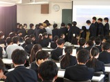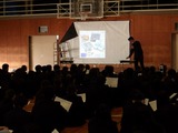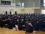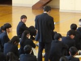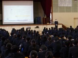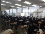 2年生は学年全員が体育館に集まって「主権者教育」を行いました。「公園を整備すべきか」「インバウンド事業を推し進めるべきか」「スケートボード用の施設を整備すべきか」「地震への対策を進めるべきか」「タブレットの使用は学力向上に役立っているか、使用の理解は進んでいるか」などなど様々な課題について、優先順位をつけ、Yes、Noを明確にして全員の前で次々発表する形態で、改めて私たちの身の回りの課題の多さに気づかされました。自分自身が考えて、地域(時に世界)を動かしていくきっかけになったのではないかと思います。