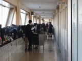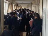 肌寒い朝でした。今日から1・2年生は学年末テストです。英語のリスニングもあり新校舎の工事も一時音の出るものは止めてもらっているため、静寂に包まれた中でのテストです。休み時間に見直しをしている生徒の表情も真剣で、浜南生の集中力を感じます。