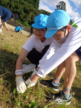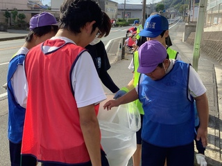 12日(火)には、各学部代表の児童生徒が学校前の歩道の草取りやゴミ拾いを行いました。