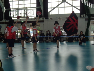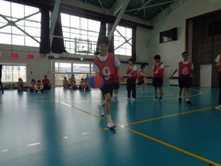 各学年、赤と白に分かれて、優勝を目指しました。今年のスポーツ集会では「みんなで入れよう!目指せ!かごいっぱい(玉入れ)」「みんなで踊ろう(エアロビ)」「応援合戦」「バスケットボールリレー(パスリレー)(ドリブルリレー)」が行われました。