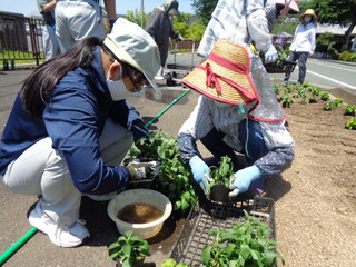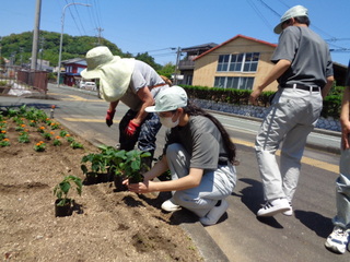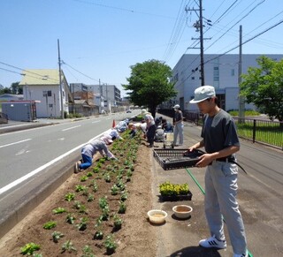 公開日 2025年06月10日 6月5日(木)に高等部農園芸班の1年生が地域の花の会の方と一緒に、道路沿いの花壇にマリーゴールド、サルビア、メランポジウムなどの苗を植えました。また、空になったポットを拾い集めたり、水を運んだりしました。きれいな花が咲くのが楽しみです。