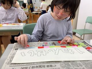 小学部のリーダーとして、スポーツ集会を盛り上げるために何をしたらよいかを6年生みんなで意見を出して、準備を行いました。万国旗やゴールテープ、スローガン、プラカードを6年生全員で作り、他学年の応援のために応援団とチアリーダーを結成しました。