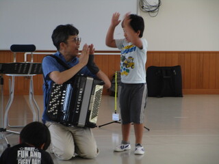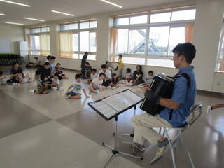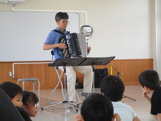 公開日 2025年09月25日 9月22日(月)にみをつくしサポーターの松本敬介さんによるアコーディオンミニコンサートがあり、1年生と2年生が参加しました。 アコーディオンの落ち着いた音色による演奏を聴いて幸せな気持ちになりました。 演奏に合わせて手拍子をしました。
