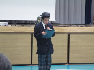 高等部1年生や多くの保護者の前で、成果や課題について一人ずつ発表しました。