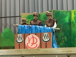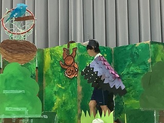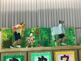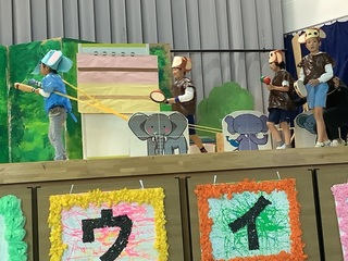 温泉に入るカピバラや、演奏しながら楽しく行進するサルとゾウ。友達と協力して、演技を披露しました。