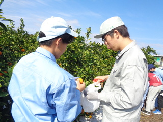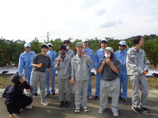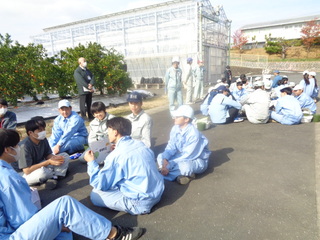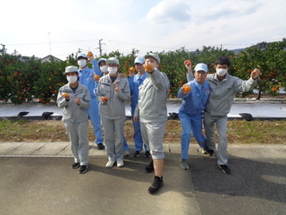 11月21日(金)に高等部1年生が浜松湖北高校の生徒とみかんの収穫作業を通して交流しました。まず始めにグループに分かれて自己紹介をし、名前と好きな果物を伝え合いました。次に浜松湖北高校の生徒から収獲方法の説明を聞いた後、個人の持ち帰り用として一人10個のみかんを一緒に収獲しました。収獲作業に慣れてくると、収獲かごを肩に掛けて、終了時刻まで夢中になって取り組みました。収穫後はみかんの試食をしながら、浜松湖北高校の生徒が出題する「農業クイズ」で交流を深めました。本校の生徒たちからは、「アニメの話ができてうれしかったです。」「また交流したいです。」などの感想を聞くことができました。収獲したみかんは27日(木)の給食のデザートとして登場し、おいしくいただきました。