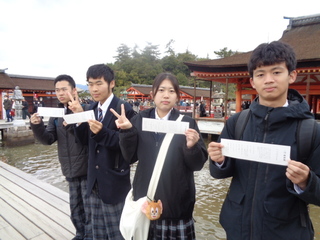 フェリーに乗って宮島に行きました。厳島神社では、自分や家族のことを祈願したりおみくじを引いたりしました。その後は宮島水族館の見学をし、商店街でお土産を買ったり食べ歩きをしたりと宮島を満喫することができました。