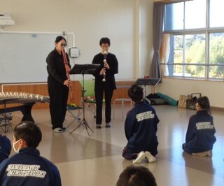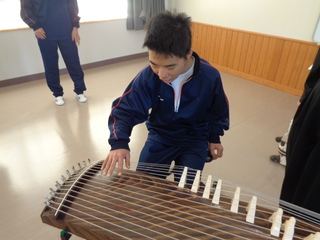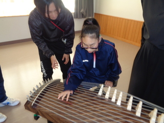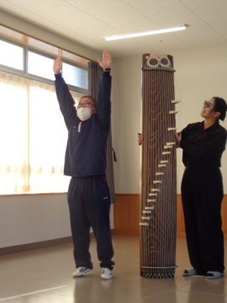 12月9日(火)に高等部1年生の音楽の授業で、ののアンサンブル様によるミニコンサートがありました。お箏とリコーダーによるアンサンブルユニットで、普段なかなか目にすることがない十七弦のお箏や、様々な大きさのリコーダーに興味津々な生徒の姿が見られました。演奏後には、印象に残った楽曲名を挙げながら「楽しかったです。」や「音がきれいでした。」など、感想を伝えることができました。また、ののアンサンブル様のご厚意でお箏に触らせていただくこともできました。初めてお箏に触れる生徒が多く、弦を弾いて音が出たときにはうれしそうな表情をしていました。