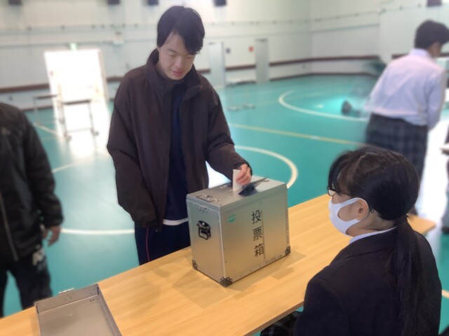 立候補者・推薦責任者は当日の演説だけでなく、事前の選挙運動にも積極的に取り組んできました。また、選挙管理委員の生徒は事前の活動や準備、当日の運営まで責任をもって取り組む様子が見られました。