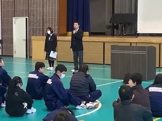 当日は立ち合い演説会、投開票を行い、次期生徒会長、副会長に選出された2名に校長先生から任命書が手渡されました。