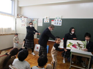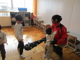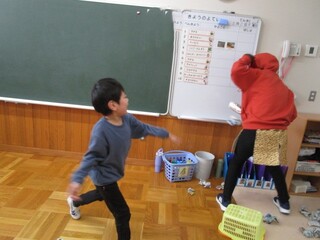 公開日 2026年03月03日 1年生として過ごす時間も残りわずかとなってきました。 2月は様々なイベントや授業がありました。その一部を紹介します。 2月3日の節分では、新聞紙で作った豆を投げて鬼を追い払うことができました。 高等部図書委員のお兄さん、お姉さんが読み聞かせをしてくれました。一緒になって絵 本のまねをして楽しみました。 音楽の授業では、ボンゴやコンガなど珍しい楽器に触れました。気持ちの良い音が教室に響き渡りました。