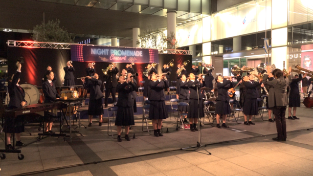 また翌9日には浜松市ギャラリーモール「ソラモ」にて「ナイトプロムナードコンサート」が開催され、浜松商業高校、浜松北高校、浜松市立高校、浜松湖南高校とともに出演いたしました。