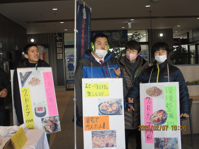 環境整備班は、桜チップの販売を行いました。お客様に自宅で簡単に燻製料理が出来ることをアピールし、多くの方々に購入していただきました。