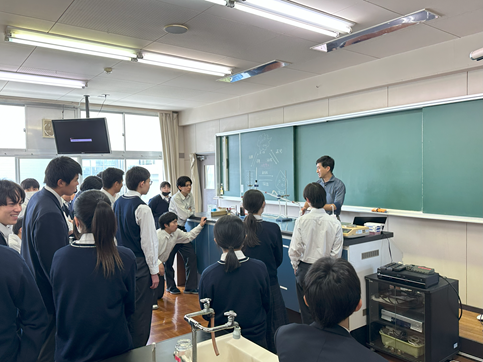 公開日 2025年05月19日 【化学基礎】蒸留 化学基礎の授業で蒸留の演示実験を行いました 蒸留装置の使い方を確認し、実際に赤ワインを蒸留しました テストでよく問われるポイントがいくつかあるのでしっかり覚えておきましょう!