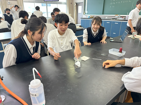 2年生の化学基礎の授業で金属ナトリウムの性質を観察する実験を行いました