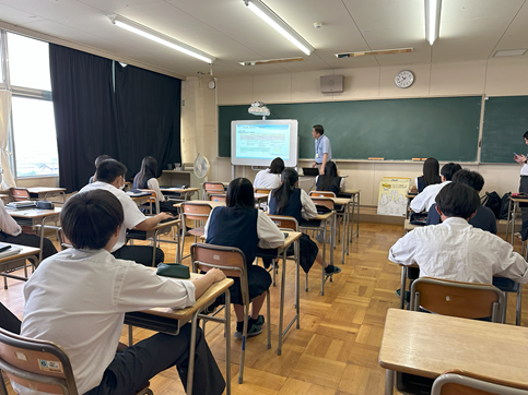 3年生理系選択の化学の授業で日本原子力文化財団様から2名の講師をお招きし、「20年後の日本のエネルギーを考える」というテーマで講義を行っていただきました