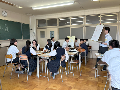 その後、脱炭素で安定供給できるエネルギーミックスが重要であるという説明をしていただき、2040年の日本のエネルギーミックスはどのような比率になっていれば良いか一人ひとり考え、グループで話し合いをしました