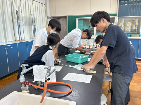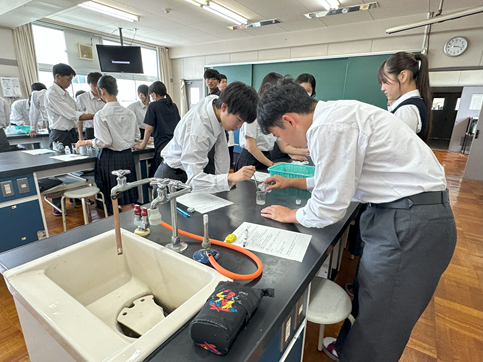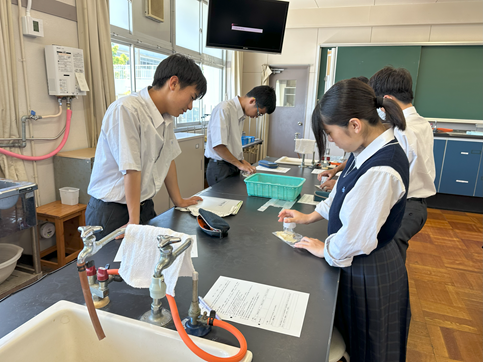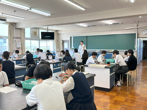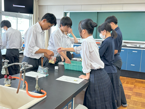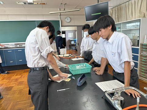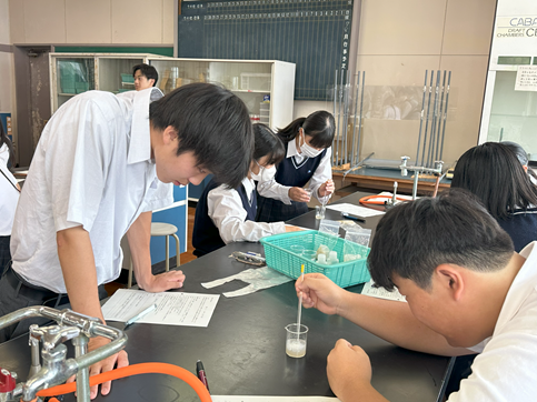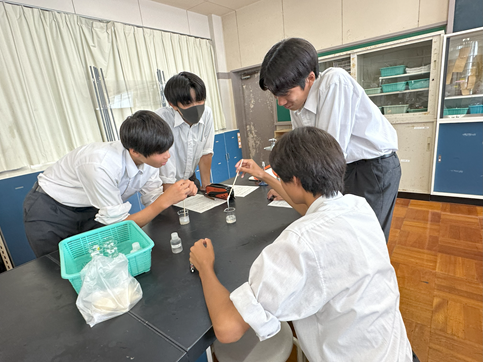 公開日 2025年07月17日 【生物基礎】DNAの抽出 1年生の生物基礎の授業でDNAの抽出実験を行いました バナナからDNAを抽出し、その形状を観察しました その後、水やエタノールへの溶解性を調べました 身近なものを使って、簡単にDNAを観察できるおもしろい実験でした