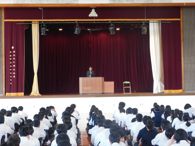 のお話がありました。生徒の皆さんは集中して話を聞いていました。