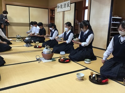 公開日 2025年09月18日 2学期に入り、まだ大変暑いですが、一生懸命 お稽古に励んでいます。10月22日(水)の校内イベント「くつろぎカフェ」では、1、2年生がお点前を披露します。 また、11月3日(月) 丸尾記念館で行われる「第21回御前崎市文化祭」で、お茶会を開く機会をいだだきました。心を込めておもてなしいたしますので、ぜひお越しください。