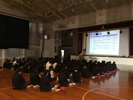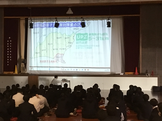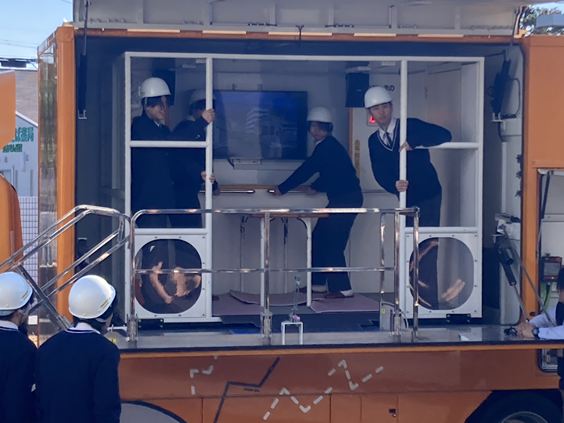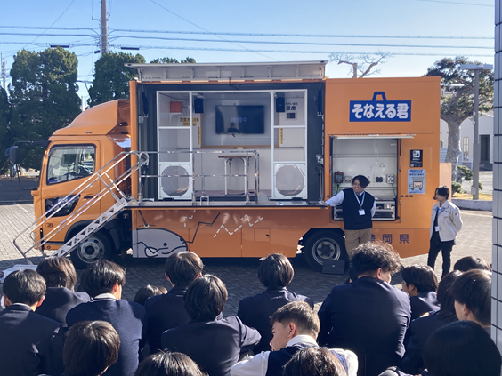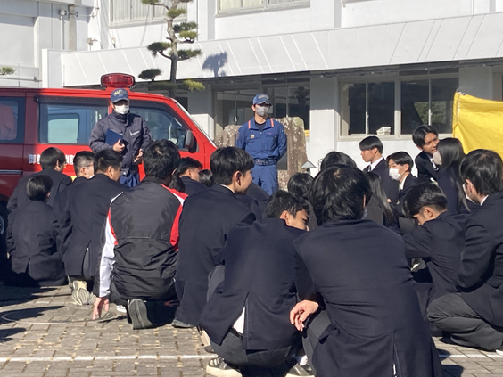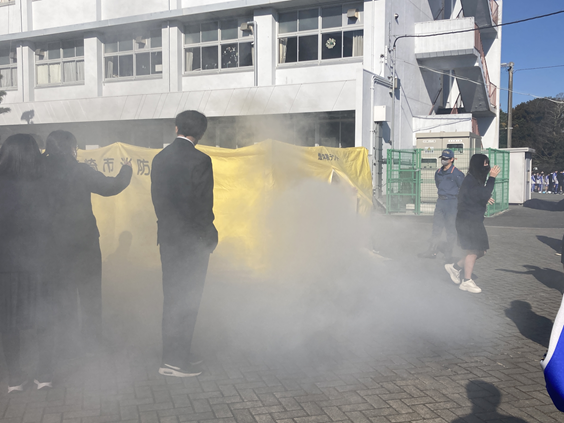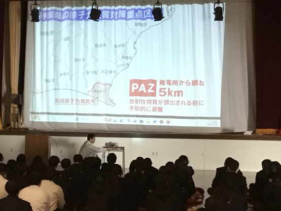 公開日 2025年12月19日 今年度第2回目の防災訓練を掛川特別支援御前崎分校と合同で行いました。 1年生は原子力防災講話、2年生は起震車体験、3年生はスモークハウス体験と消火器の取り扱い方を学びました。 災害はいつどのように起こるかわかりません。講話の聴講や実際に模擬体験をしてみることにより、防災への意識を高める良い機会になりました。