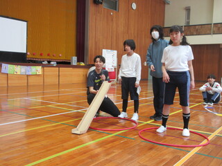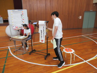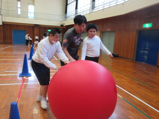 3年生は、全体の司会進行や、『ゴールボールいれゲーム』を企画しました。準備では、ゴールの段ボールを金や銀で装飾したり、リハーサルを行ったりしました。当日は、得点係、ボール係、名前コール係、案内係などに分かれ、1、2年生が戸惑わないよう進行しました。
