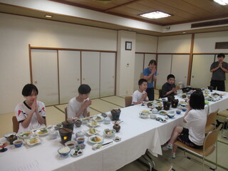 ホテルに到着。大きなお風呂でさっぱり汗を流し、お楽しみの夕食!