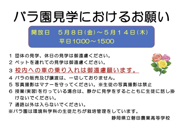 5月バラ園見学について