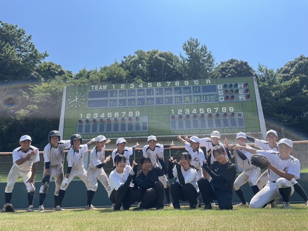 週2回、練習で使わせて頂いている磐田球場で、球場スタッフの方からバックスクリーン越しに、熱い応援メッセージを頂きました!