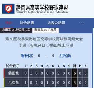 公開日 2025年08月25日 8月24日に磐田球場で秋季大会地区予選2回戦が行われ、磐田北6-4浜松商業で勝利し、県大会出場を決めることができました。 1回戦に続き熱い応援ありがとうございました。 県大会でも、磐北らしい野球を行っていきますので引き続き応援よろしくお願いします。 インスタグラムにも試合の試合の様子を掲載しています。ぜひご覧ください! インスタグラムはこちらから☆