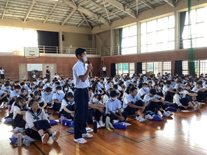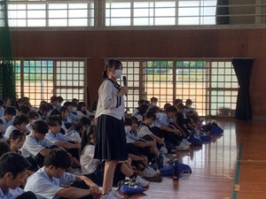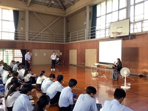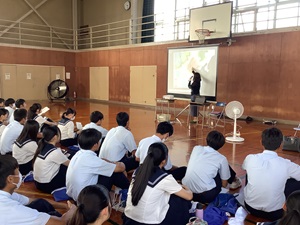 公開日 2025年09月16日 広島平和文化センター委嘱被爆体験伝承者の小林悠子氏をお迎えし、9月11日(木)2年生総合的な探究の時間に、平和講話を実施しました。 12月の修学旅行で広島を訪問する前に、被爆の実相や被爆者から受け継いだ被爆体験談をお聞きしました。 平和への願いが一層強まる講話となりました。 2学期の2年生総合的な探究の時間では、戦争・災害・経済危機・サイバーテロ・気候変動などの有事について探究学習を行っていきます。