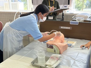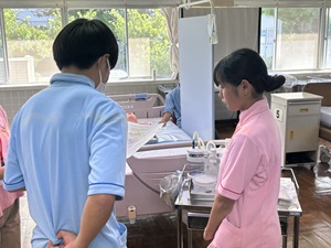 公開日 2025年09月25日 9月24日、2年生の生活支援の授業で喀痰吸引の実技テストを行いました。今回は口腔内および鼻腔内の吸引を行いました。 多くの生徒が緊張しながらも、一生懸命練習に取り組みました!中には練習の成果が思うように発揮できず苦戦する場面もありましたが、全員無事に合格することができました。 これからも実技テストが続きますが、全員が一発合格できるように応援しています!