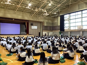 公開日 2025年10月03日 9月25日(木)、本校体育館にて1年生の総合的な探究の時間の学年発表会が行われました。 クラス代表グループは、先日のクラス発表からさらにブラッシュアップした提案を打ち出し、聞いている人がより魅力的に感じるような発表をすることができました! 学校代表に選ばれた班は、さらなる探究活動を続けていきます。 この探究活動を通して得たことを今後に活かし、地域を活性化していけるように頑張ります。