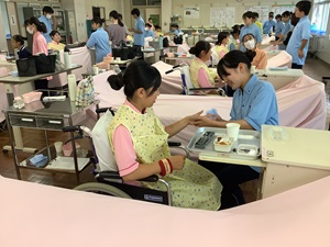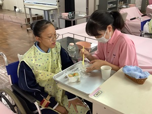 公開日 2025年10月17日 福祉科1年生が生活支援の授業で「食事介助」を行いました🥄 利用者様とのコミュニケーションを大切にしながら、「次に食べたいものはありますか?」「おいしいですか?」などとお声がけをし、笑顔のあふれる時間となりました。