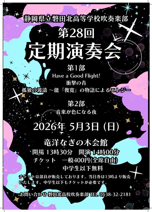 5月3日(日)竜洋なぎの木会館で吹奏楽部第28回定期演奏会を開催します。