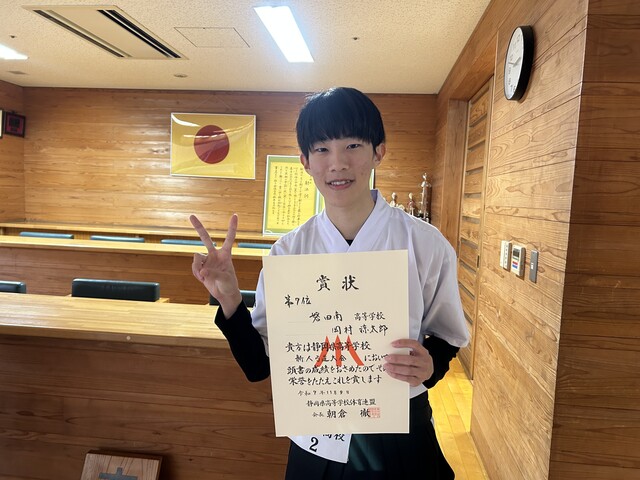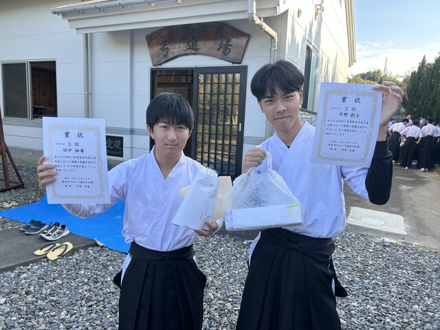 4/7(日)に実施された中遠地区高等学校弓道大会において、女子団体で3位、男子個人では26HRの丸尾和馳さんが3位に入賞しました。