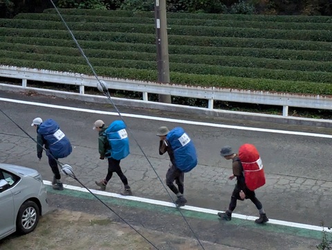 各自が20kg以上の重量を背負ってスタートです。