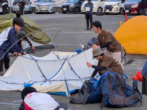 設営では制限時間内にテントを適切に張れるかを審査します。