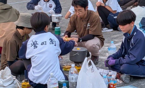 炊事も制限時間があります。作業分担して手際よく調理していました。
