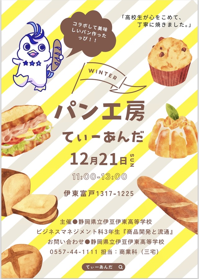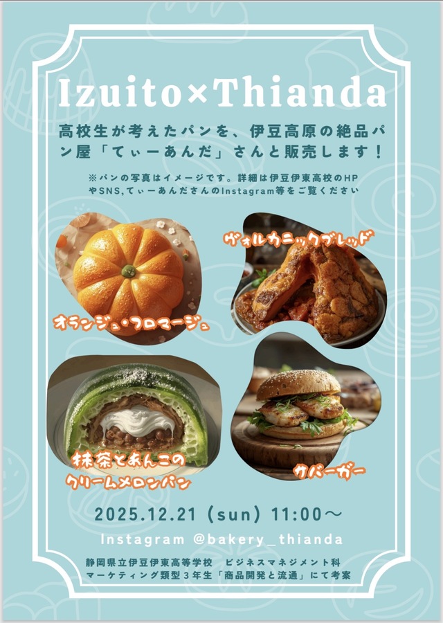 伊豆高原にできて1周年を迎えた「ぱん工房 てぃーあんだ」さん(@bakery_thianda )に全面的ご協力いただきます。てぃーあんだを経営されているご夫婦は沖縄で修行を積み、伊豆高原に開業されました。おしゃれで驚くほど美味しいパンが多いだけでなくお二人のお人柄に、生徒も担当教員も一目惚れしたパン屋さんです!ぜひ伊豆高原まで足をお運びいただけますと幸いです。