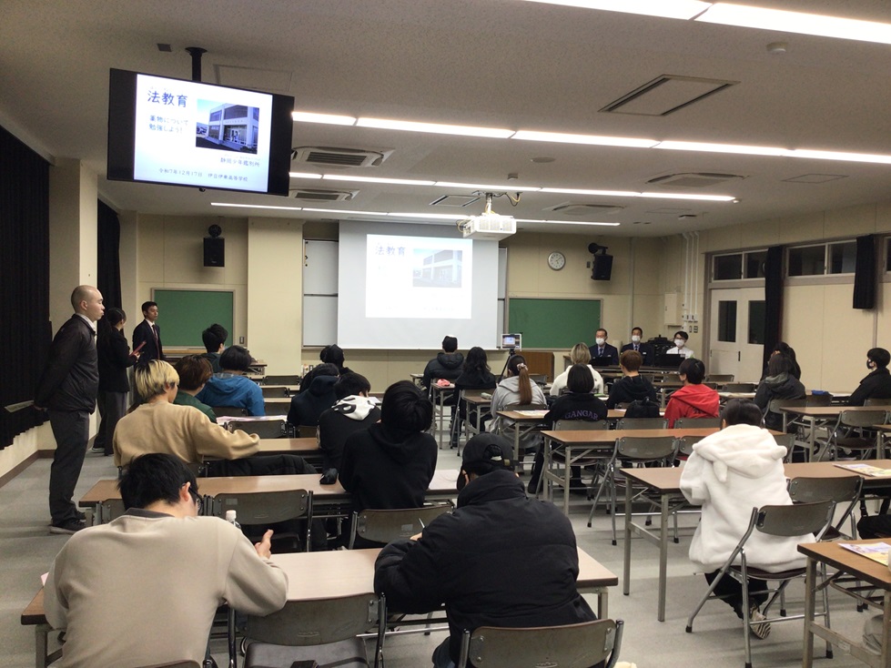 本日は、伊東高校定時制のOBである、山豊工業株式会社 代表取締役の山口豊栄様に講師を務めていただき、キャリア座談会を開催しました。山口様のお話を通して、生徒が自身の将来はもちろん、高校生として今何が大事なのか考える機会になったと思います。