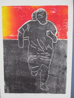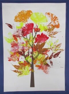 版画「徒競走を頑張る雫」 葉っぱスタンプ「秋の風景」