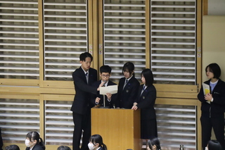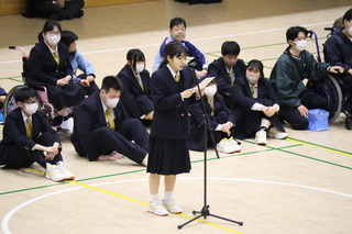 公開日 2026年04月10日 4月9日(水)に伊豆伊東高校との対面式が行われました。 生徒会役員が主となり、お互いの学校のことや校歌などを紹介しあったり、式の司会を伊豆伊東の生徒と協力して行ったりすることもできました。 これから、碧春祭や授業などで伊豆伊東高校と交流することがあります。 同じ校舎で学ぶ仲間としてともに成長していくことを期待しています。