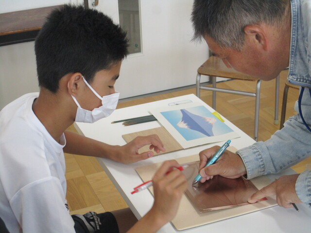 夢中になって取り組み、堂々とした富士山ができあがり、生徒たちは大満足でした。