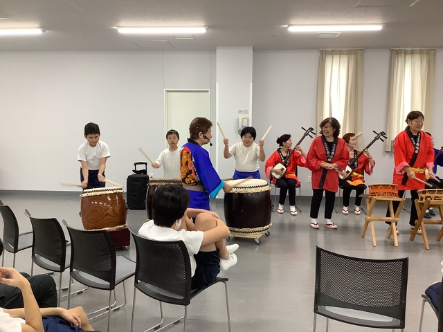 初めて民謡を聴いた児童も大勢いましたが、津軽三味線の音に耳を傾ける子、曲を聴きながら身体を動かす子、三味線とセッションしながらリズムよく和太鼓をたたく子、 踊りを興味深そうに見る子・・・みんな思い思いに楽しみました。